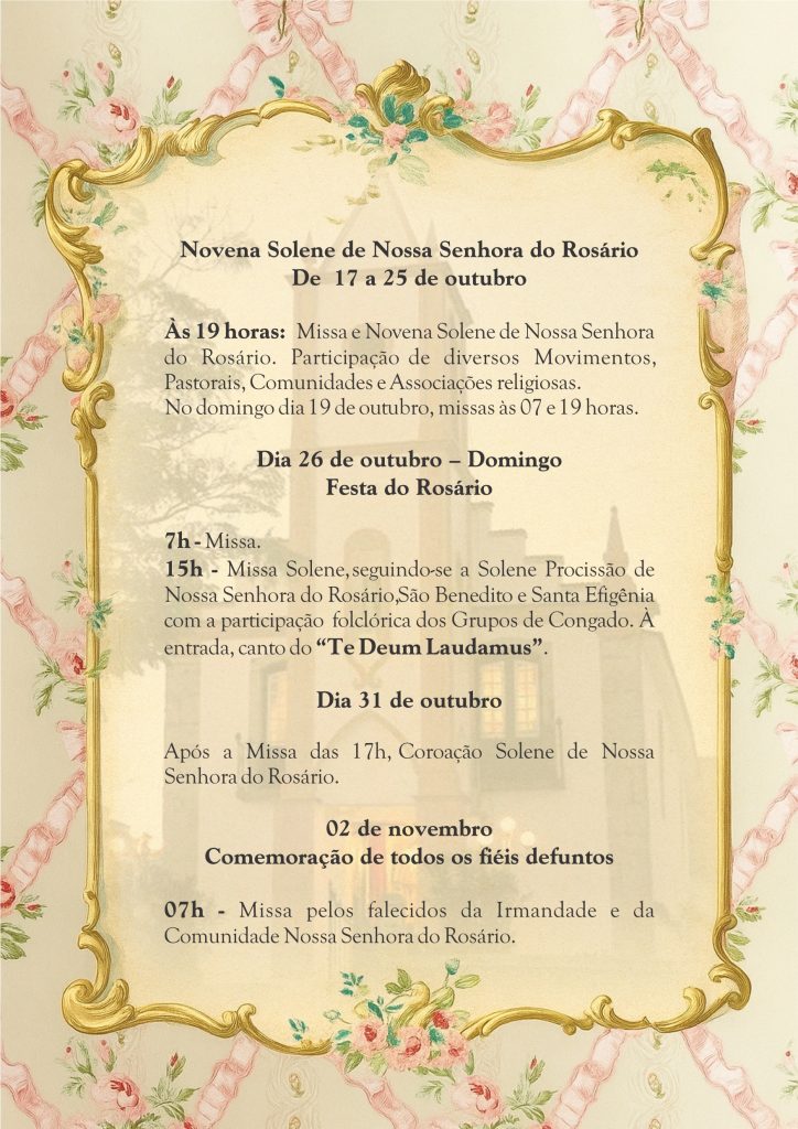 • Festa de Nossa Senhora Aparecida de 03 a 12 de outubro.